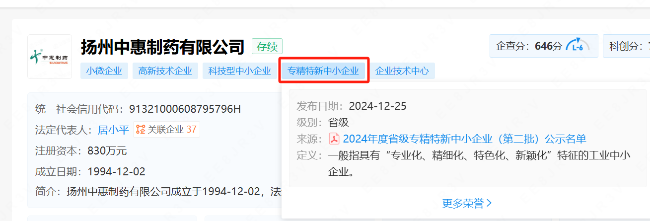 近日,經(jīng)過嚴(yán)格評審,揚州中惠制藥有限公司再度獲得殊榮,被評為“專精特新”企業(yè)。這一榮譽充分認(rèn)可了公司在制藥領(lǐng)域的卓越表現(xiàn)和創(chuàng)新實力。